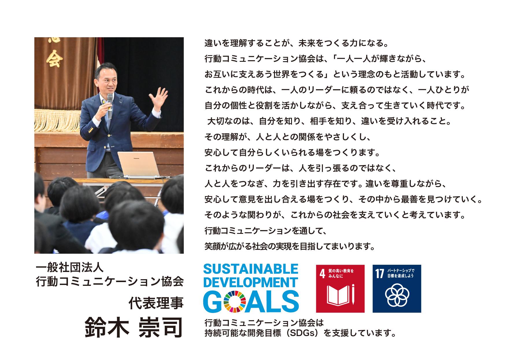 2018年、一般社団法人 行動コミュニケーション協会を立ち上げ、『一人一人が輝き、互いに支えあう世界をつくる』ことを理念として、たくさんの仲間たちと笑顔を作るために行動をスタート。